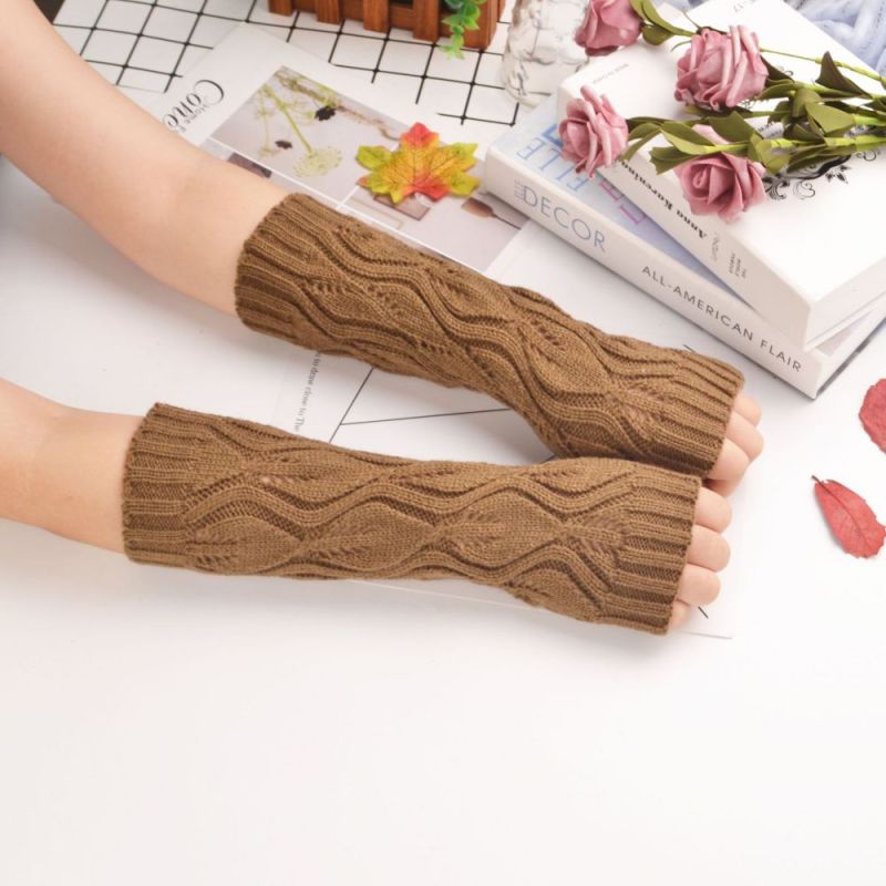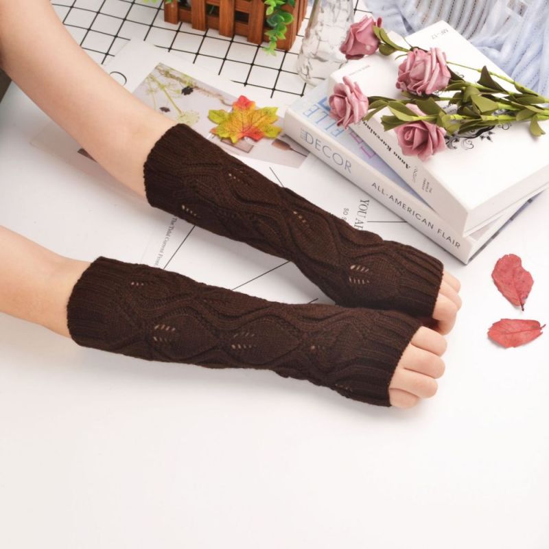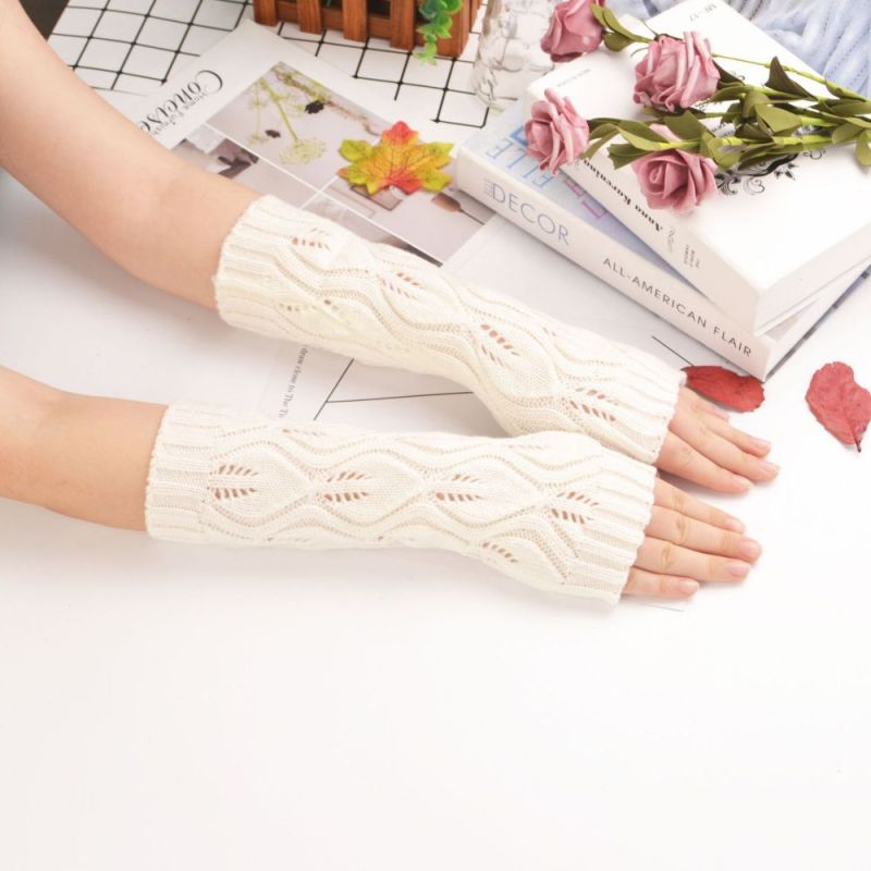Couvre-bras Chaud Mi-long À Motif De Feuilles D'hiver Pour Femmes
